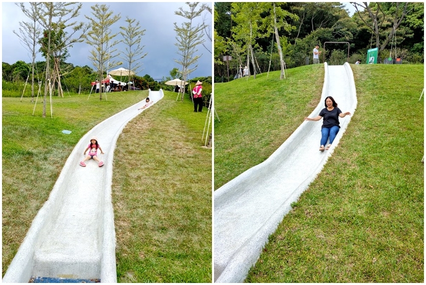 ▼右側比較長的磨石子溜滑梯比較卡,速度不快,小朋友溜下來也滿安全的~~左側比較短的反而比較刺激,小口愛比較喜歡(笑)!