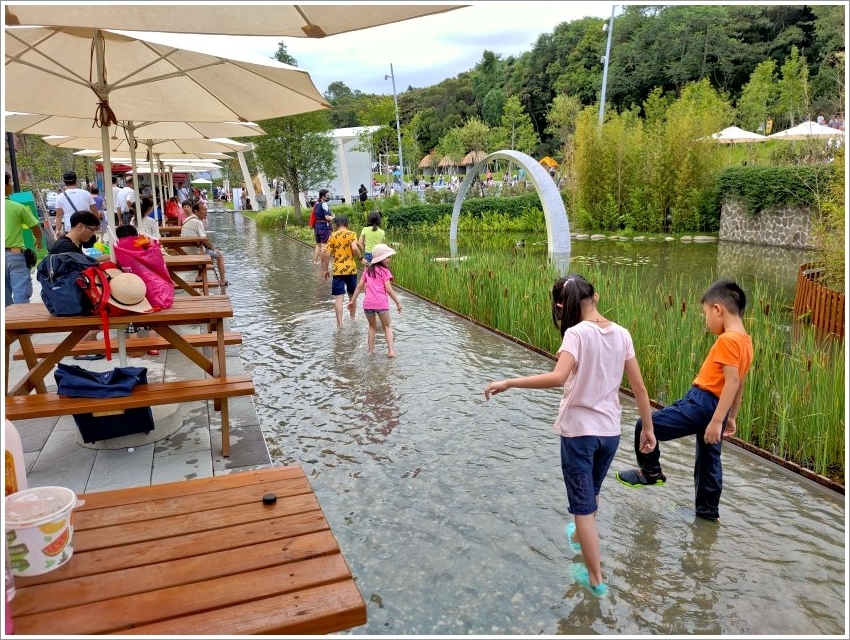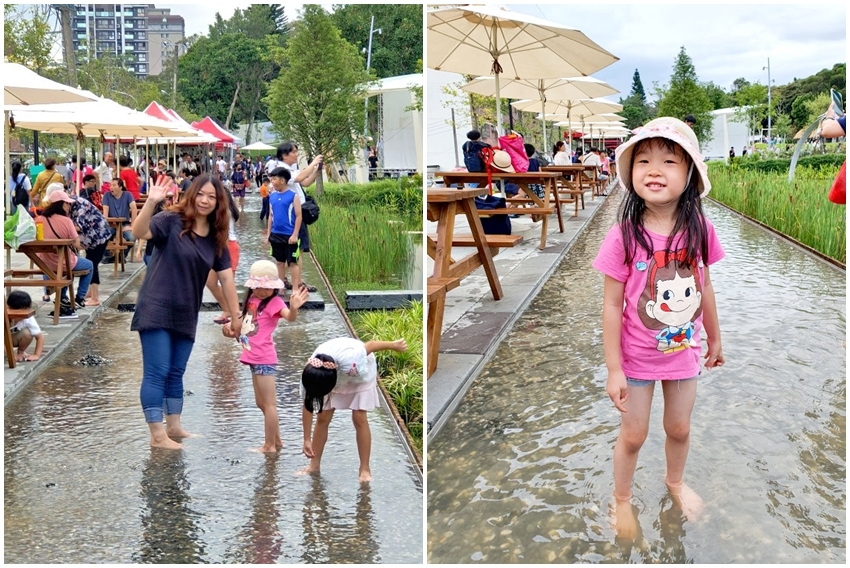 ▼休憩區旁還有特別設置一條淺水道,讓小朋友可以踏進水中玩樂消暑!