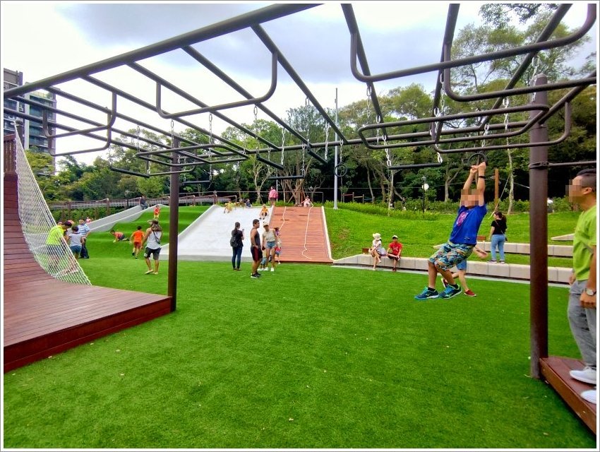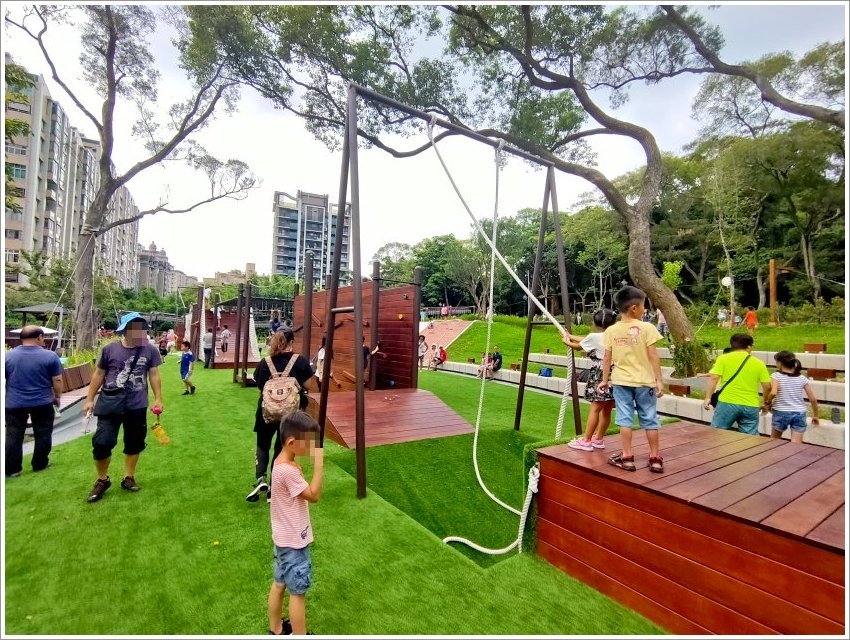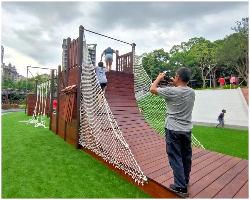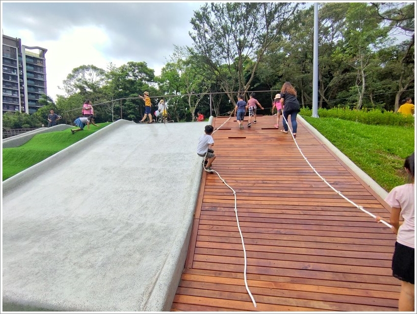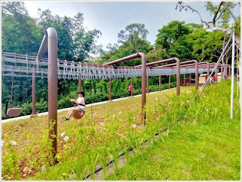 ▼登愣!最厲害的就是這個啦~~全國第一座壯齡鋼軌滑索,連大人也可以安心乘坐,公園不再只是小朋友玩樂的專利啦!不過這個設施人比較多,需要稍微排一下隊,但也不至於到太多人,大家可以放心!