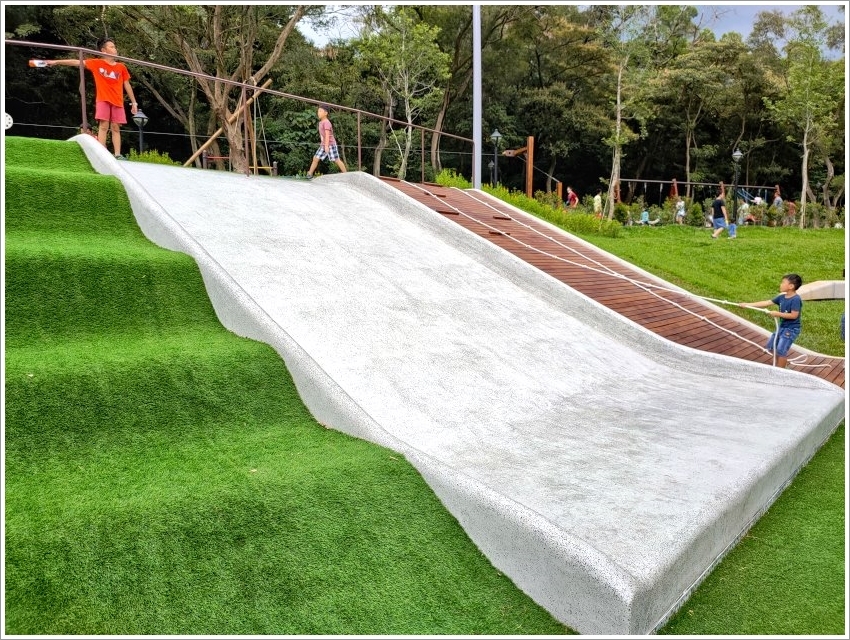 ▼一旁還有超大磨石子溜滑梯,溜下來滑順又刺激,很多小朋友都很愛!