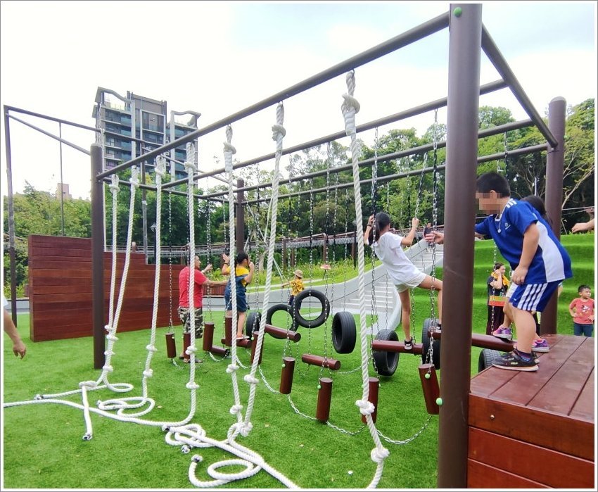 ▼中間的帶狀遊戲區則是比較適合12歲以上的青少年,很適合做體能訓練,這裡也是全國首創青少年體訓場所,大家都可以來這裡挑戰一下!