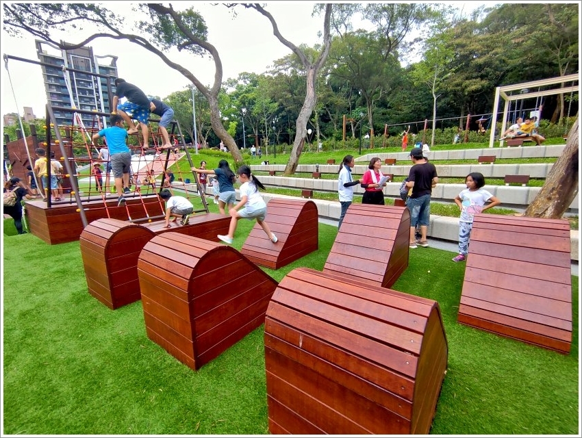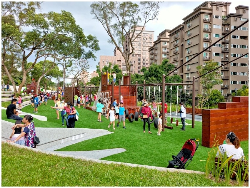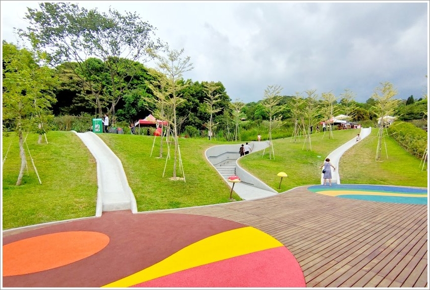 ▼「桃園大有梯田生態公園」分為生態梯田區、美好食光區、森林挑戰區三大區塊,從民有十街沿著民有十五街至民富十三街整個打通,所以佔地是非常寬敞的!
