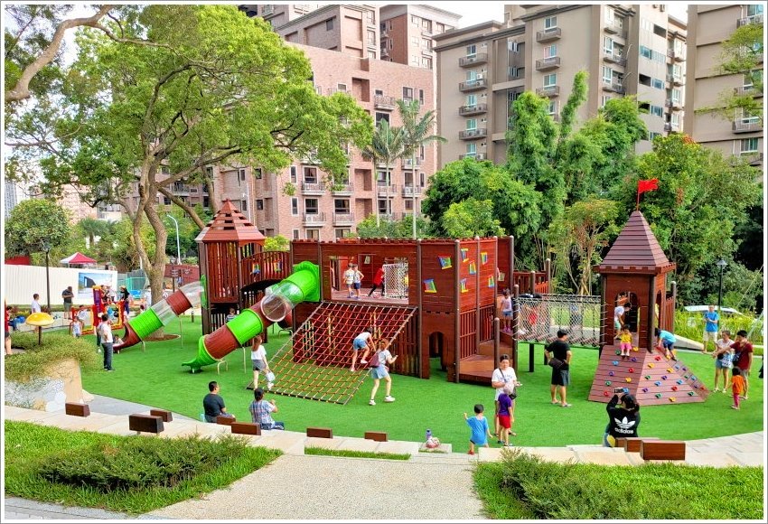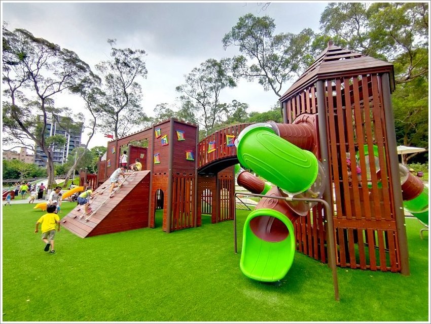 桃園最新生態公園結合親子遊樂區,是個遛小孩的新景點!位於桃園大有消防隊旁的「桃園大有梯田生態公園」不僅佔地多達2.1公頃,分為生態梯田、美好食光、森林挑戰等三大區,除了有磨石子溜滑梯、親子盪鞦韆、攀爬設施、低齡滑索之外,還有全國首創的壯齡鋼軌滑索及青少年體訓廣場,是全齡都很適合來玩耍的綜合遊憩區!此外還有圓弧形舞台廣場、生態池、戲水池等,週末假日也會安排活動及表演,很適合一家大小一起同遊!