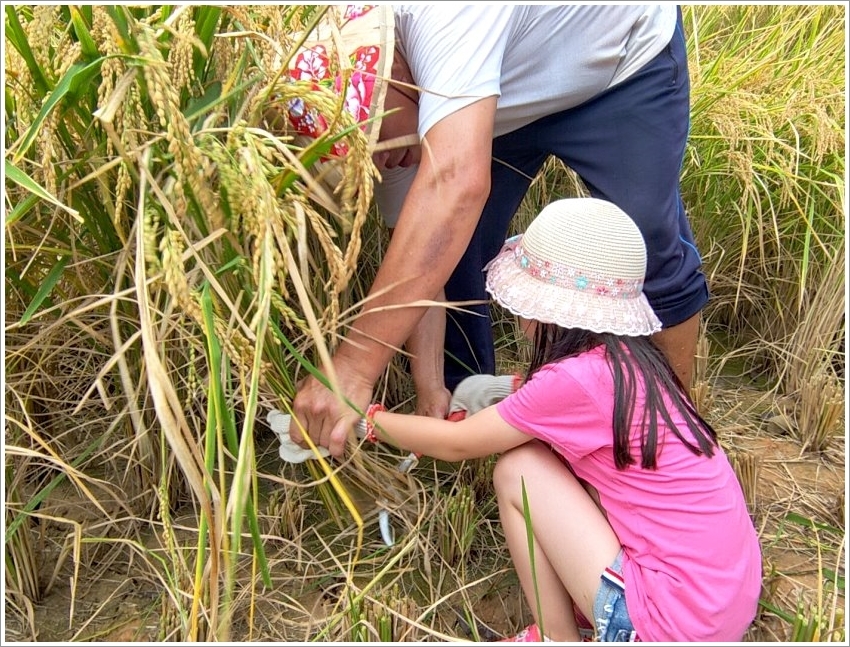 ▼現場會提供斗笠、手套及鐮刀,也會有專人協助,所以小朋友也可以安心體驗!