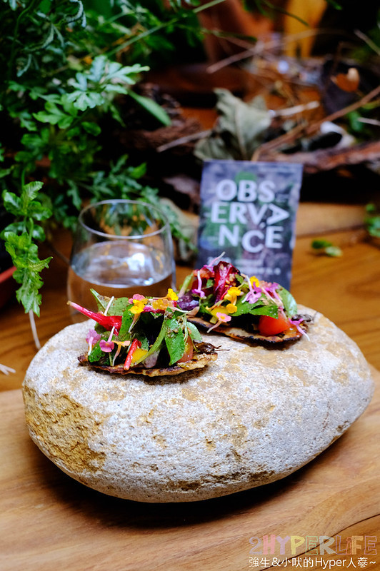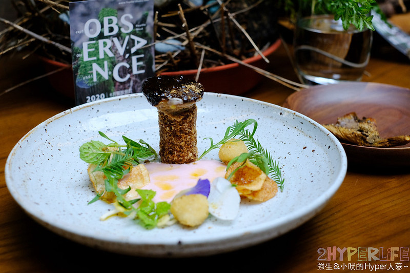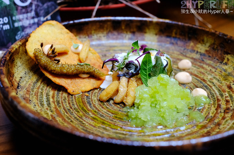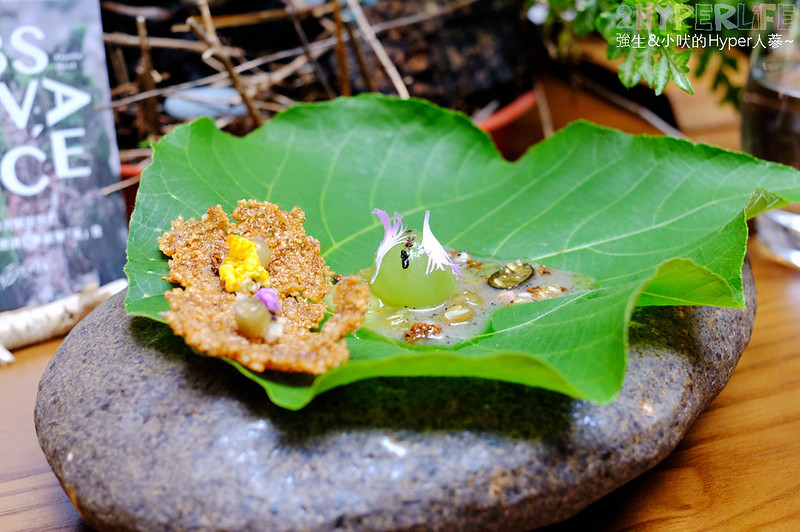 而這天我們搶先體驗了這13道料理中的其中5道,出餐內容分別是>螞蟻琴酒>木質樹皮>樹根處暗藏驚喜>野株小草>蜜蜂,首先第一道的螞蟻琴酒就引導大家想像自己是隻螞蟻,到森林之間尋找自己的餐點,有可能在落葉裡或是溪水邊,完全就是有種尋寶的概念啊!至於餐點藏在哪裡就不破梗囉,每次的位置可能也不盡相同。