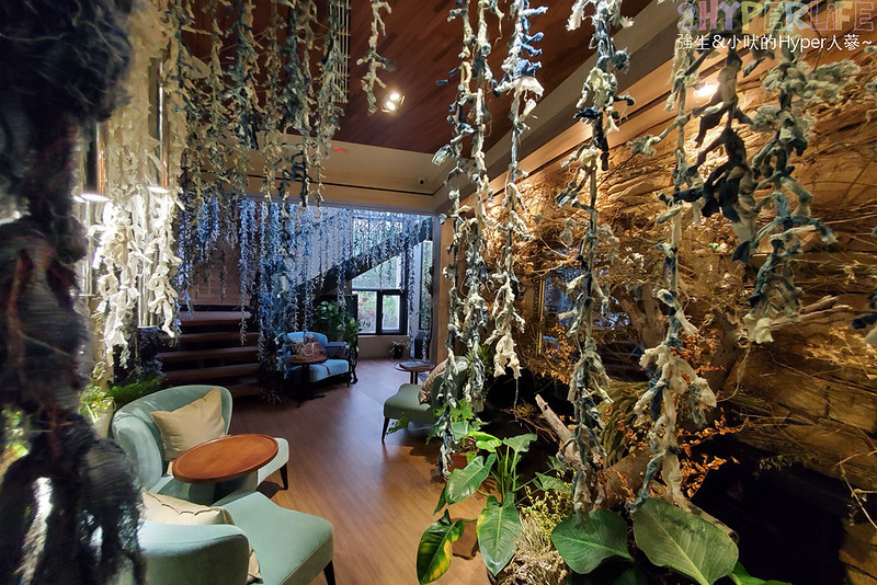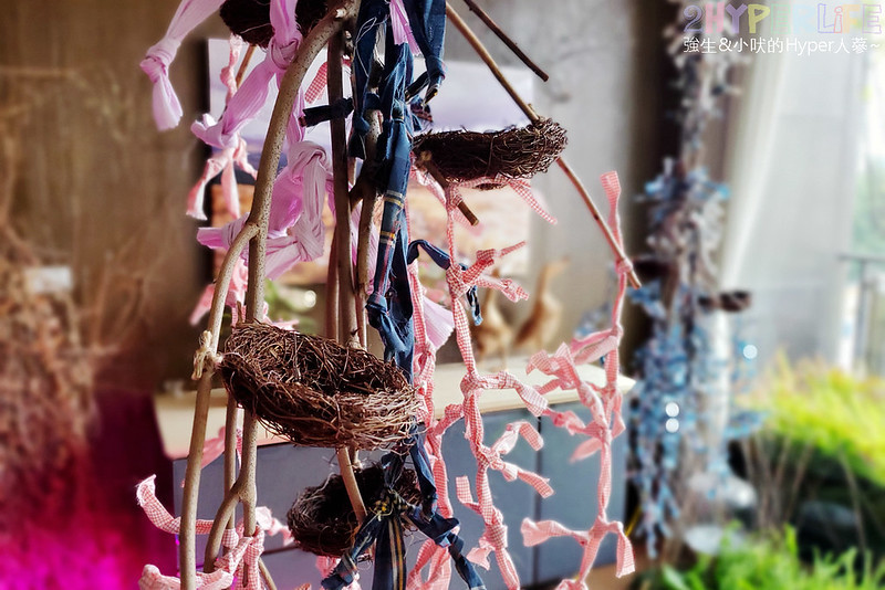 循著服務人員的引導上了二樓,大門一開映入眼簾的景象有點出乎意料耶,四處細心以布繩結的裝置藝術遍佈在整體空間中,營造出一種奇幻又浪漫的風格。