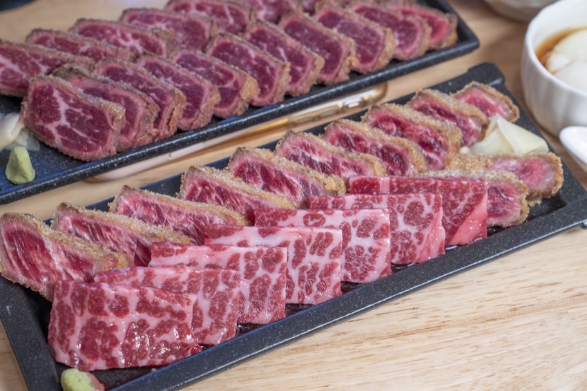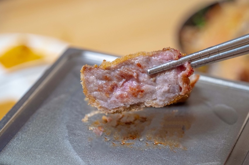另外這道「炸極上肩牛小排」則是使用美國穀物飼養牛肉,少了草飼的腥味,吃得到更鮮甜的牛肉天然香!不過因為有筋的關係,口感相較於另外兩款牛肉更加有嚼勁!