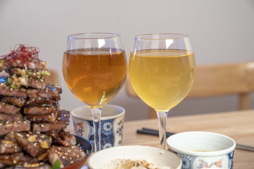 高腳杯盛裝的蜜香紅茶和玉露高山茶,讓擺盤看起來更有質感,吃完滿滿的牛肉汁後,喝一口茶解解膩很舒服!