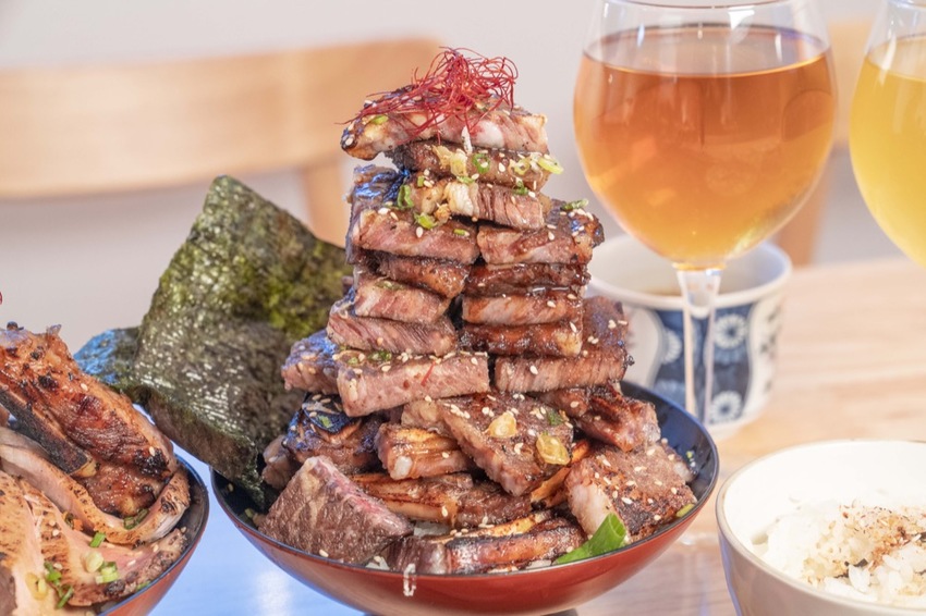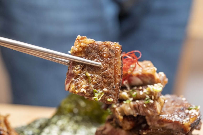 看到這疊的跟小山一樣的帶骨牛小排,視覺超衝擊!一層層上等牛小排醃製過後高溫炙烤,微粉嫩的肉質口感略有嚼勁,鹹香迷人的滋味吃完實在過癮!