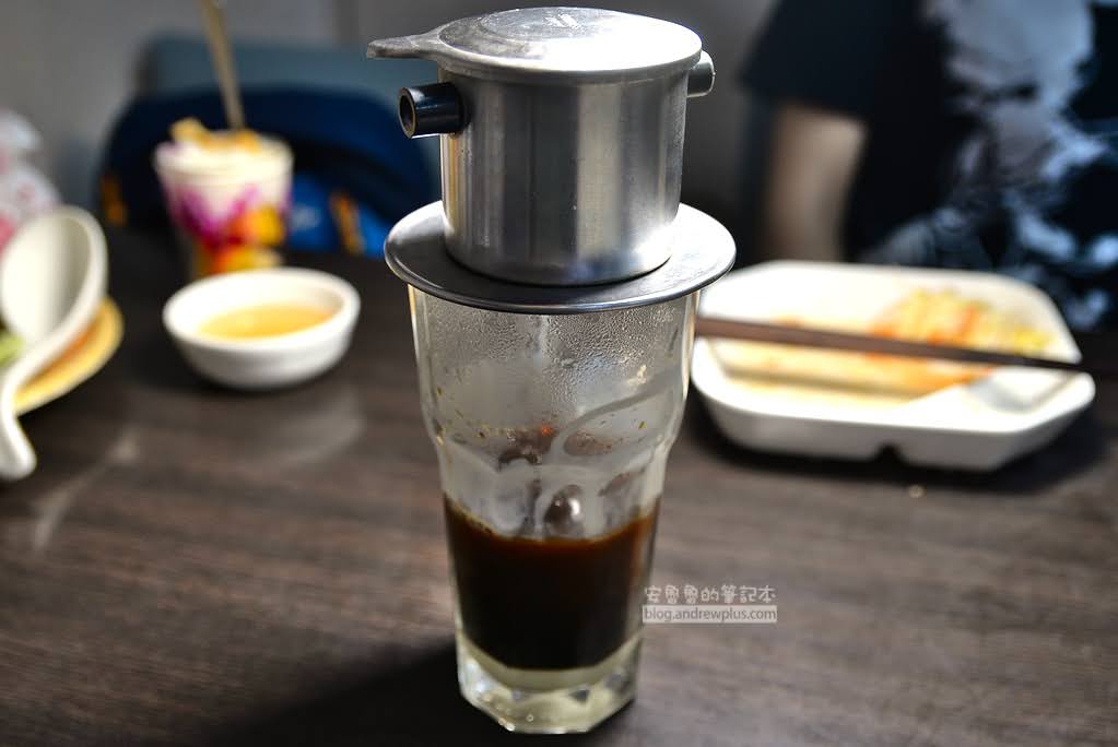 菜單裡只看得到越式漂浮咖啡,只想喝咖啡卻不想吃冰淇淋的同學,只要告知店家,就可以改成這一款越式咖啡,咖啡液從上方的濾杯緩緩滴入