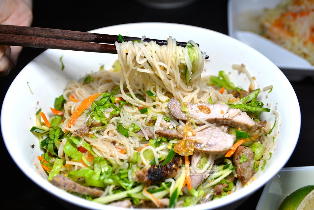 米線吃起來軟,攪拌均勻之後吃,就可以品嘗到大口吃烤肉,伴隨米線滑潤的滿足口感,並點綴著花生碎粒的香氣和生菜、紅蘿蔔、小黃瓜的清爽