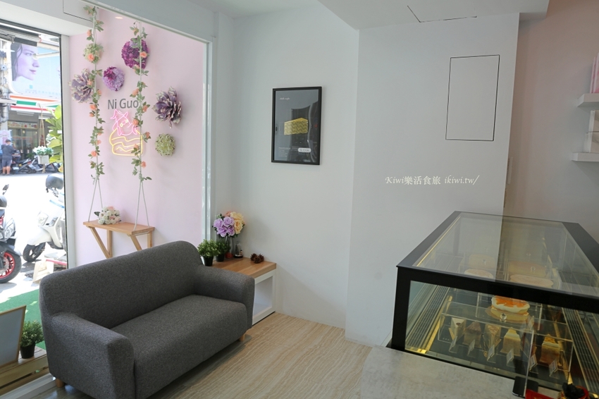 走進2度C你會發現是一家很清新的店,裝潢上走簡約帶點夢幻的花草添了不少仙氣,等待之餘都可以坐在沙發上休憩呦!先前到過公益店買過千層蛋糕,逢甲店沒有內用座位,只做外帶喲!