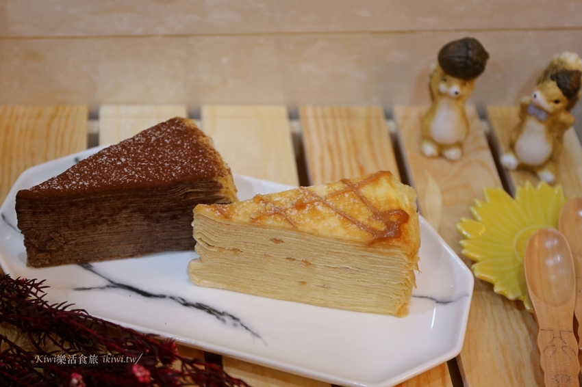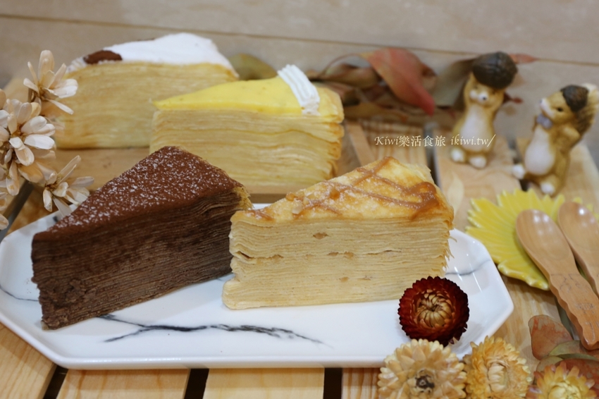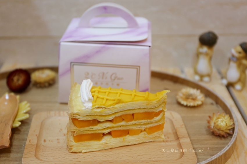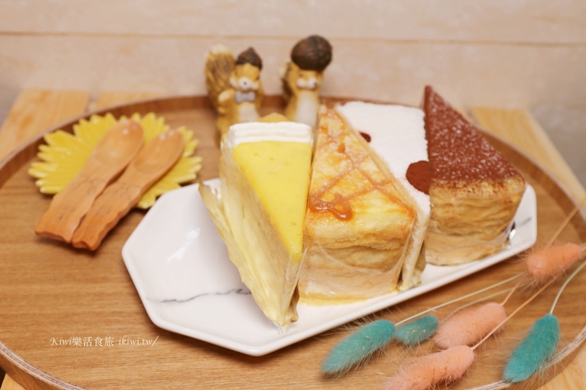 Kiwi點了香草千層、濃郁巧克力、酸甜檸檬、焦糖杏仁千層蛋糕,另外買了一個芒果千層,喜愛千層的朋友,一次買足,再好好享用準沒錯啦。