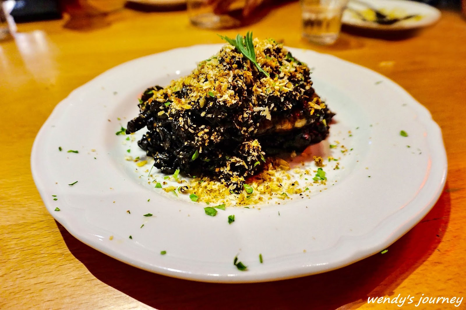 比起一般的燉飯,黝黑的墨魚燉飯總有種莫名的特別感。很喜歡這道菜的調味,軟嫩的墨魚搭配收的恰到好處的醬汁,米飯的口感很順口,每人一口很快就解決了,很推薦的一道菜。