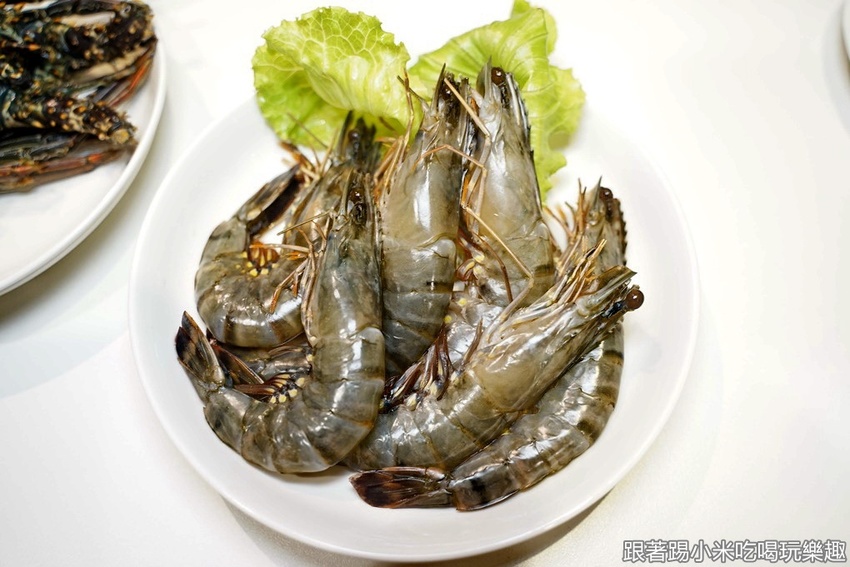 若是兩人前來,有超澎湃的雙人蝦蝦套餐(999元),肉品部份可以二選一,有雪花牛及松阪豬,果然是名符其實的蝦蝦套餐,超級多草蝦還有兩隻大大的澳洲斑節蝦。