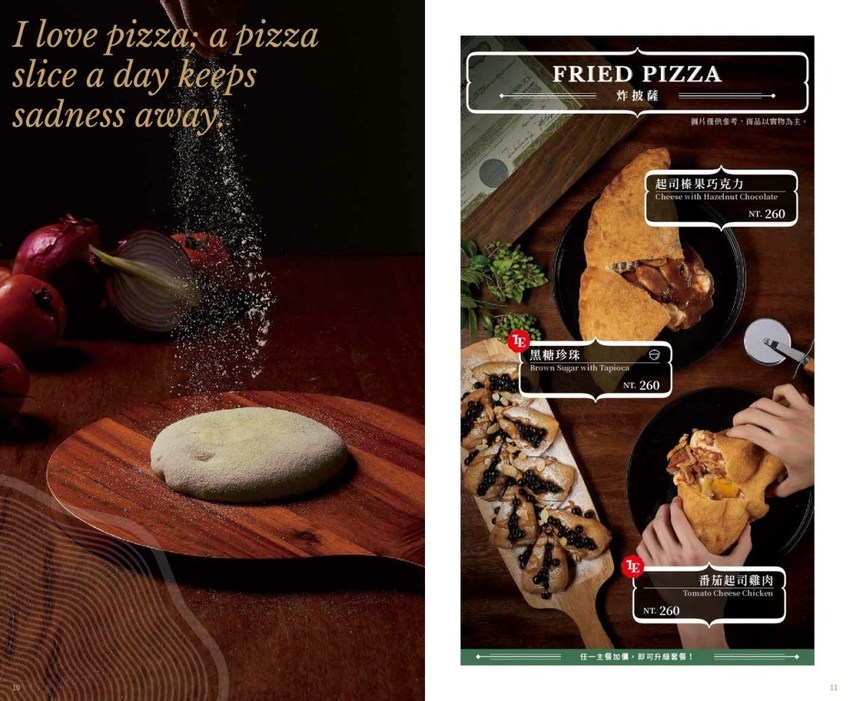 吃完飯一定要來點甜點的,我們的甜點是黑糖珍珠披薩,不過這是炸披薩,和一般披薩口感不太一樣,炸過的金黃色麵糰放進黑糖珍珠,我覺得他的珍珠很漂亮,像寶石一樣,忍不住就想拍照,再淋上黑糖漿。用甜披薩當飯後甜點代替一般制式的小蛋糕,也是不錯的選擇。