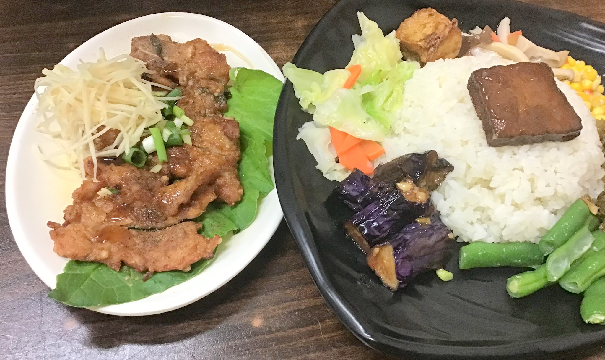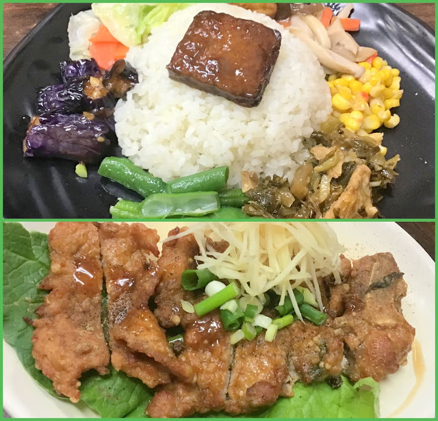 現炸排骨飯 $80元,肝連湯 $40元,滷味220元擺滿了整桌。