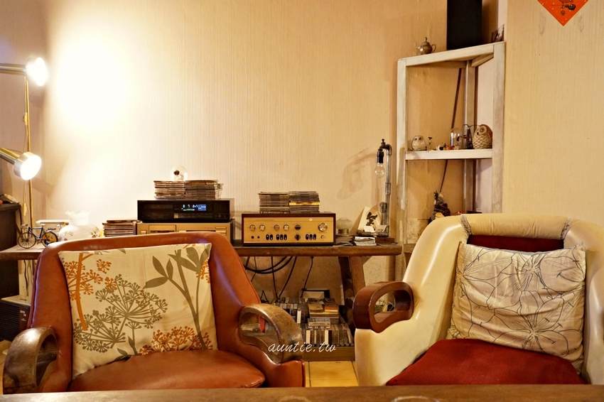 店裡的擺設很吸引人,很多復古的小物,舊沙發的造型很特別,不知道哪找來的,花紋很酷耶,位子是有點低,不過很有味道,很像小時候眷村家裡的擺設,很懷舊呀!