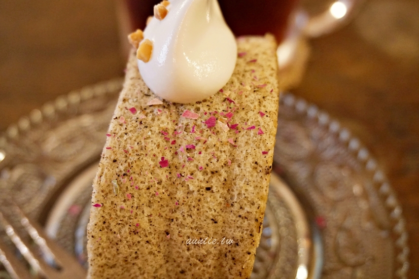 同樣也是加了玫瑰花瓣,蛋糕捲的口感濕潤,跟內餡是融為一體的口感,吃起來有挺濃郁的伯爵茶香,也很好吃!