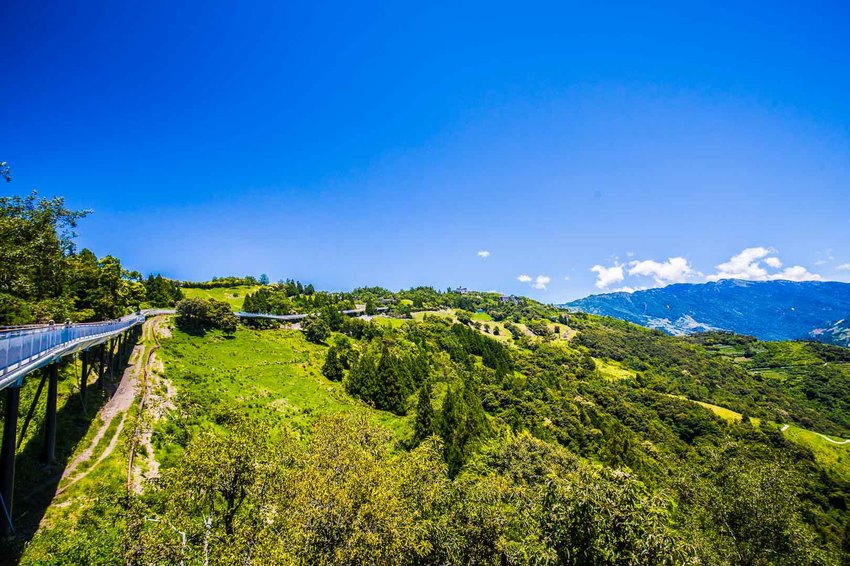 清境天空步道位在清境農場牧區內,是以鋼構高架施工設置木棧步道,步道總長度約1,600公尺,步道上都有設置觀景平台讓大家可以休息拍照