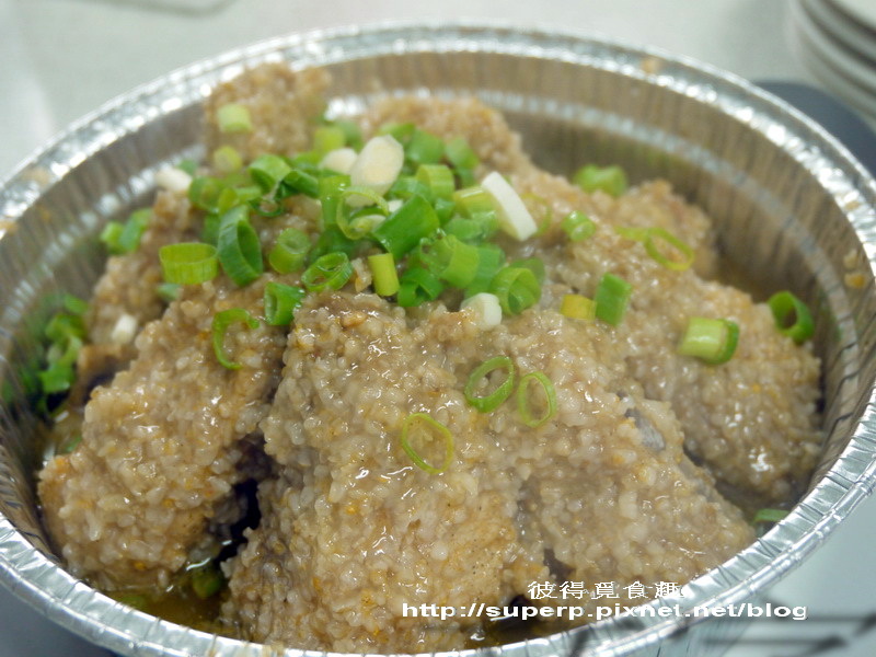 粉蒸排骨$450小份(感覺用的是類似金蓬萊排骨酥的豬肋排,肉本身柔滑無比。外頭裹的粉綿密細緻,整個非常入味,是我吃過最棒的粉蒸排骨之一,特推!)