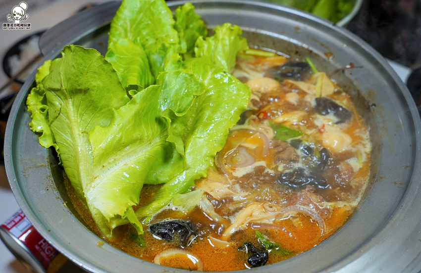 高湯熱度會讓辣椒香氣又再次的暴發出來,帶有雞湯濃度、讓火鍋料更濃