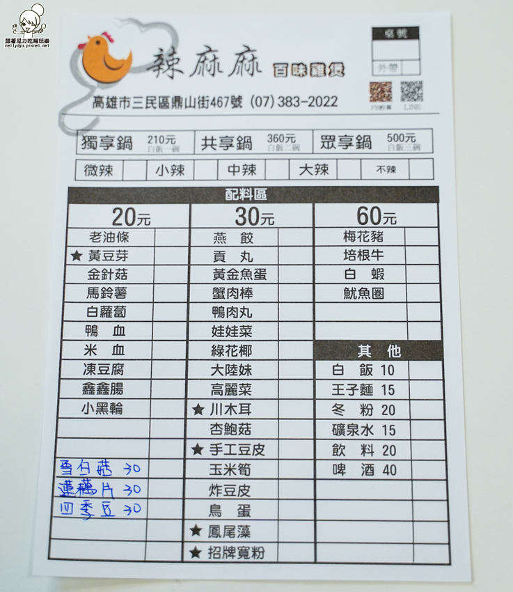 辣麻麻百味雞煲 干鍋·火鍋,鄰近鼎山路的家樂福,很容易錯過的鍋物專賣店
