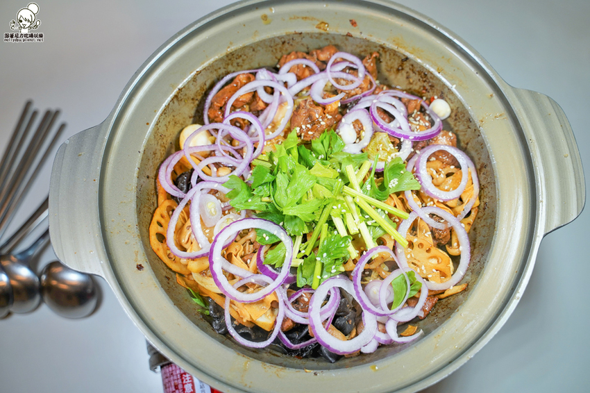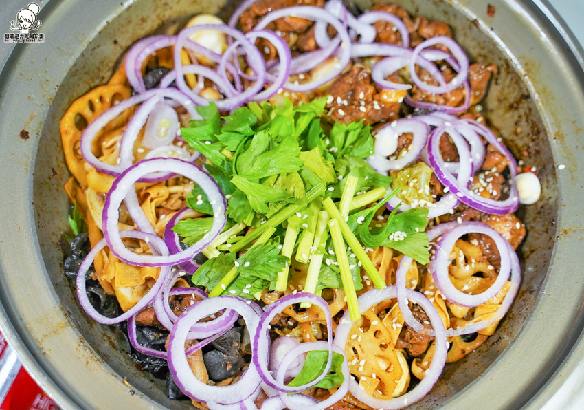 香噴噴的乾鍋上桌囉,食材配料都直接加入乾鍋內拌炒