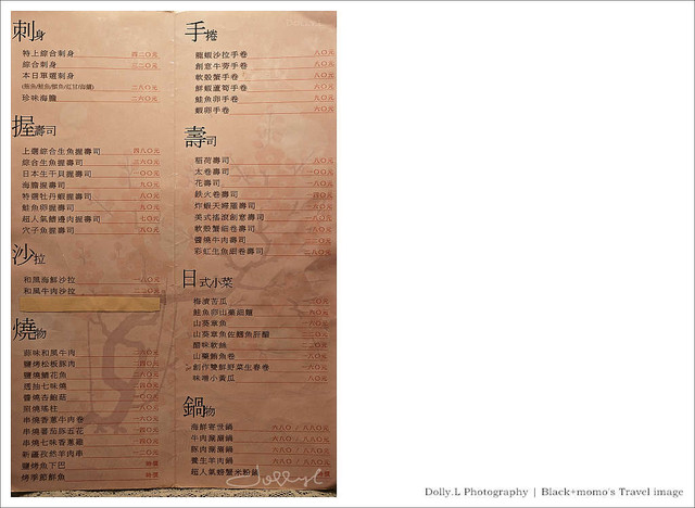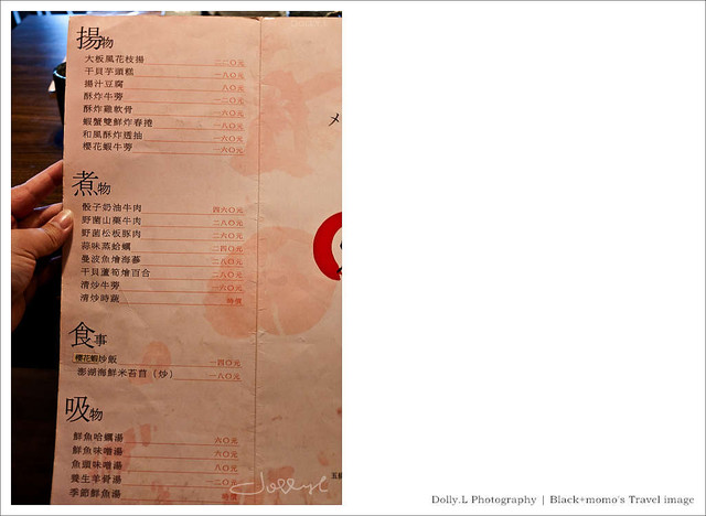 「五條通創新居酒屋」菜單從刺身、握壽司、烤物、鍋物、煮物到揚物等等,各類皆有數款選擇,當然以新鮮現撈漁獲佔大部分。人氣推薦必吃菜色為上等綜和刺身、超人氣鰭邊肉握壽司、梅漬苦瓜、超人氣螃蟹米粉鍋、干貝芋頭糕、澎湖海鮮米苔苜等,其中還不乏一些台式菜色,可算是這裡的特色之一!