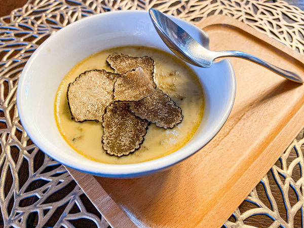 這道有加入秘密武器~義大利黑金剛夏季松露!我超愛松露的第一次看到現刨手法!