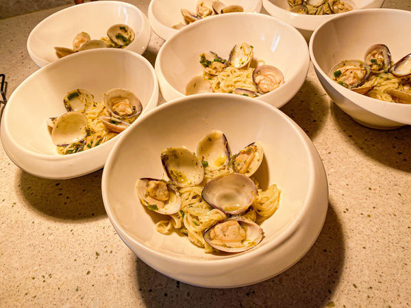義式的手法台式的料理,與新鮮的蛤蜊清炒更能保持鮮甜~也使用香菜醋醬和充滿台味的米酒清炒,蛤蜊的海味集一身在其中,鮮甜美好
