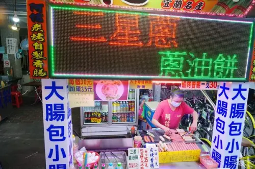 一整排出租協力車與腳踏車的店家 還有很多賣吃的喝的攤販
