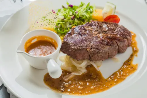 牛排本身的調味很剛好,鹹香適中不太需要醬料,重口味的朋友~頂多加點玫瑰鹽提味就好哦