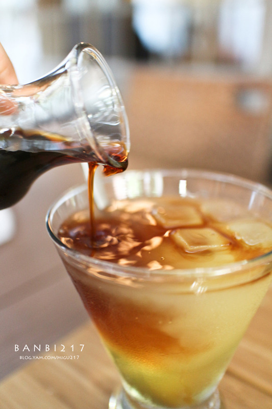 有別於市面上是果汁糖漿加入咖啡的做法,青田七六將濃郁的冰滴咖啡倒入日本長野王林蘋果汁內,喝的到咖啡的濃郁、蘋果的果酸與甜以及香氣,富有層次的創意飲品。