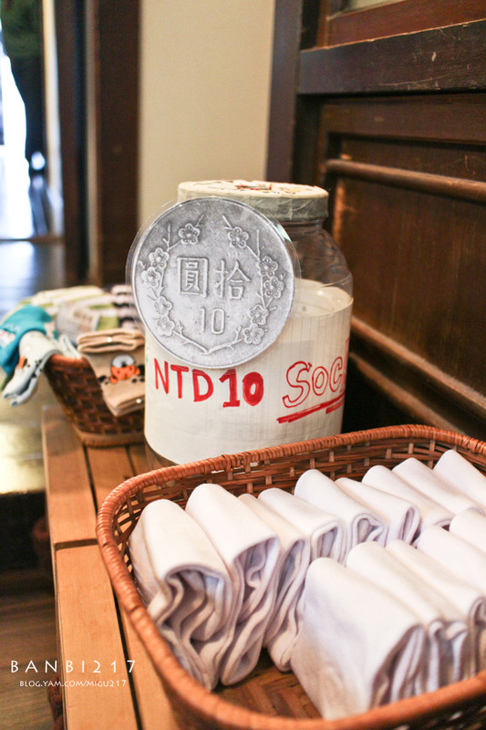 因為保護檜木地板降低耗損率以及美觀,所以青田七六入內須穿著襪子,若臨時忘記帶襪子的朋友,店家也有在販售台灣製的棉襪子(一雙10元)。