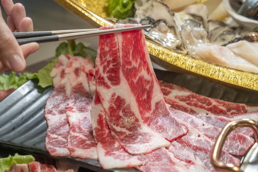 除了超澎湃的海鮮必吃,高級肉品當然也不能錯過。店內的所有肉片都是原塊現點現切,不怕吃不到juicy好肉!