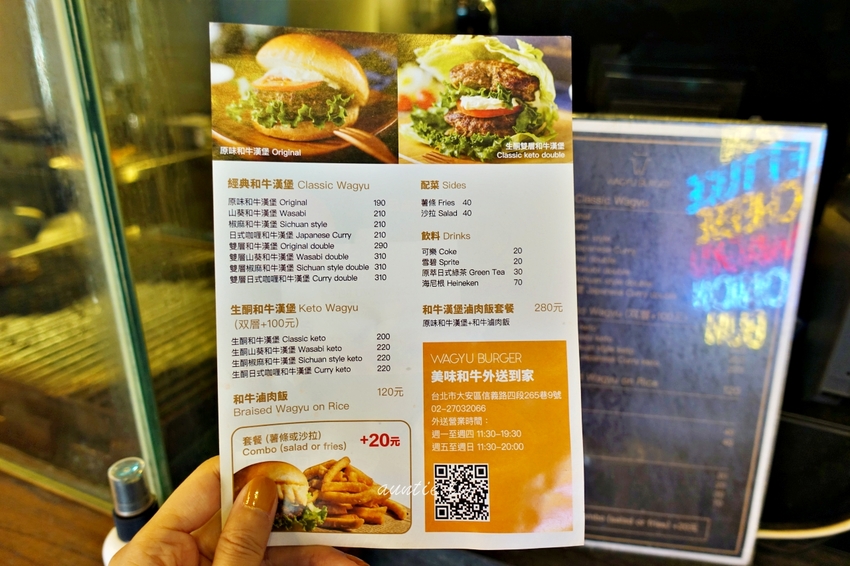信義安和站附近有家「WAGYU BURGER 」,和牛漢堡,同事揪著一起來吃午餐,店裡品項就是和牛漢堡,照片看起來很誘人,和牛漢堡耶,感覺起來就是又香又juicy,不來踩點一下怎麼行!