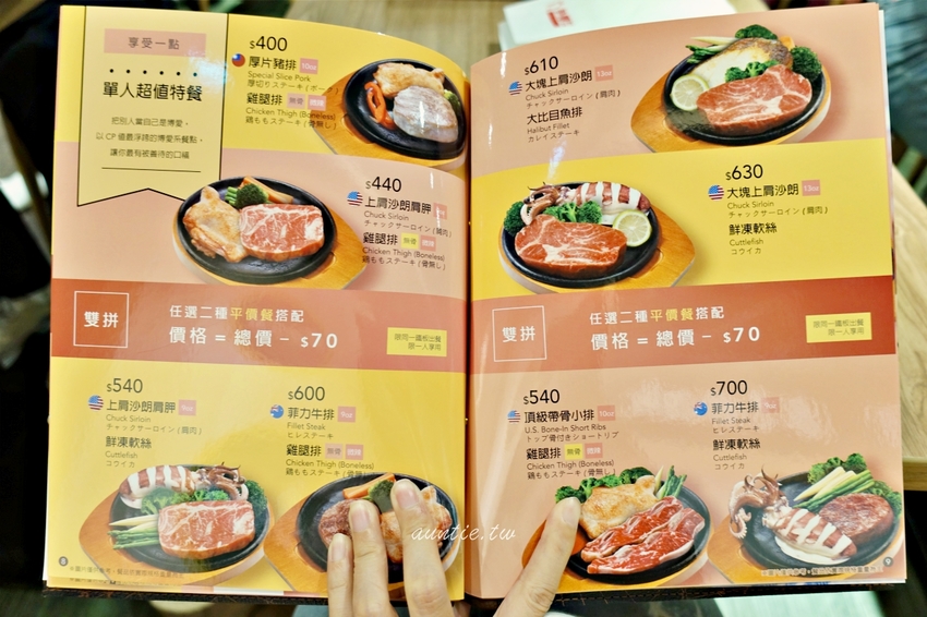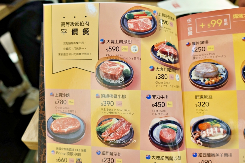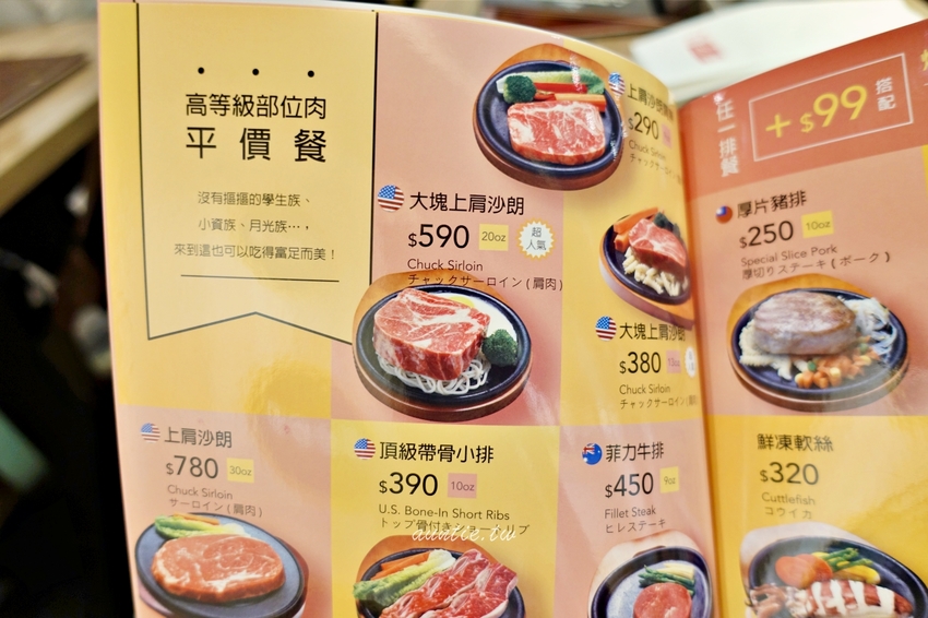 上肩沙朗肩胛 9 oz NT.290 大塊沙朗上肩 13 oz NT.380