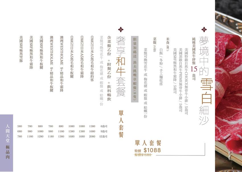 『振興優惠加碼 』9/30前在活動期間餐前出示花花世界熟客簡訊或截圖本活動畫面,市價1680元A5和牛免費升級給您