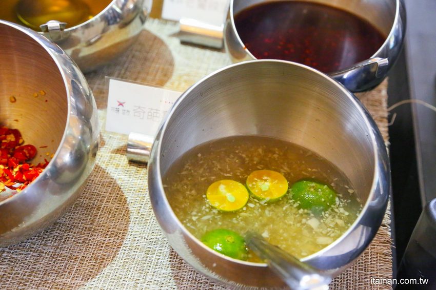 像是獨創的奇葩薑醋,調和比例剛剛好,清爽帶酸甜用來佐海鮮最能提出自然鮮甜味。特製的北方韭菜帶點清香感,咀嚼時能增加脆脆的豐富口感,我個人也超愛。果然花花世界鍋物不只是眾所皆知的火鍋厲害,就連醬料也能穰人感受到用心。