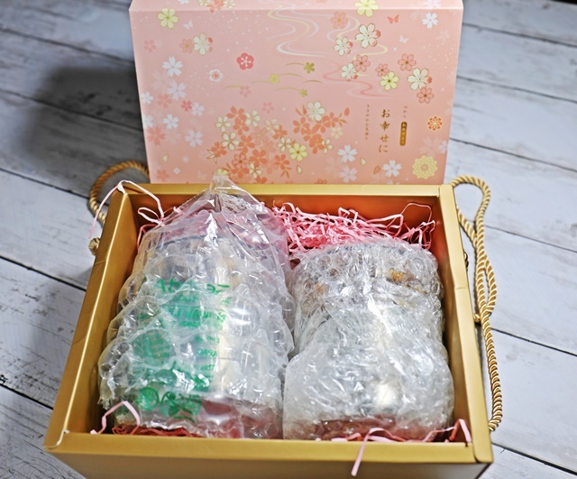 清新風格的Tiffany藍,開口處有張紅色金字日文的感謝小貼紙,這個禮盒讓收到的家人、朋友能感受到滿滿的祝福與感謝,夏威夷豆豆先生不加防腐劑,未食用完畢請放至冰箱冷藏保存,細心的店家也在盒子上貼著需冷藏的小貼紙。