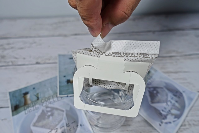 濾掛式咖啡的小耳朵方便掛在杯子杯緣上,這樣牢牢卡住讓你在沖熱水時不會因為重量垮掉,這設計真的很貼心。