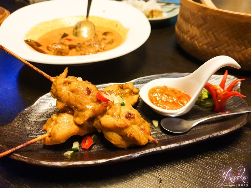 沾上一旁帶著辛香濃郁的沙嗲醬,超級好吃!! 好懷念當初在新加坡吃到沙嗲時的感動