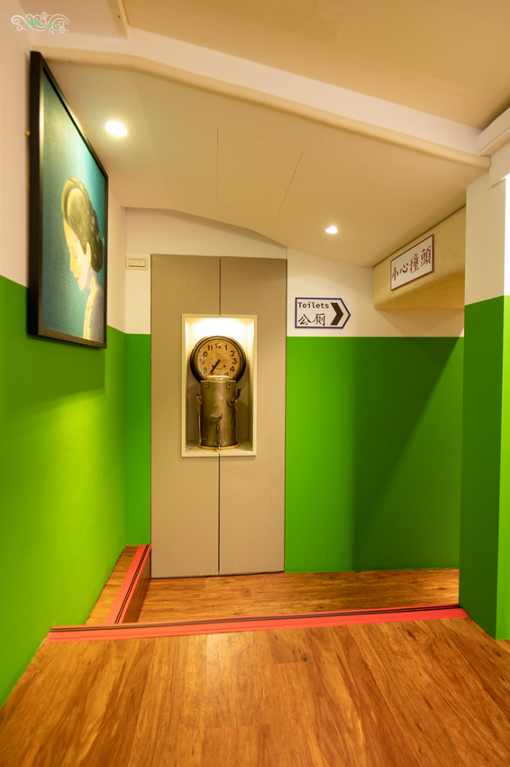 圖|通往廁所的轉彎角,有著懷舊的特色擺飾。