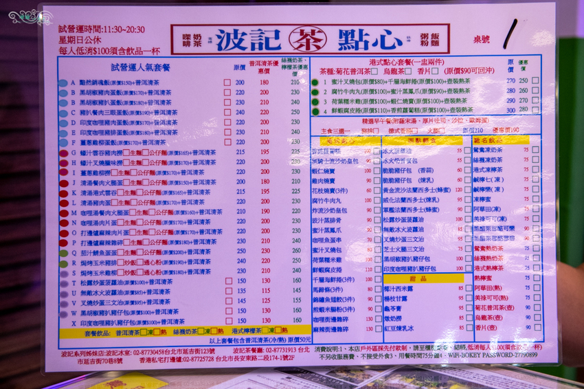 圖|這是波記茶點心試營運的菜單,實際還請參考現場菜單。