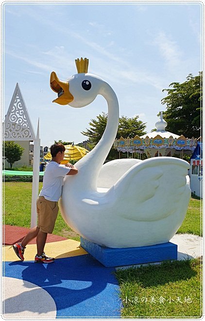 鵝媽媽的旁邊竟然有許多可愛的小鵝造型,你看看S這樣站上去拍起來有沒有很帥啊!!! 不單單是大人拍出網美照,就連~~~