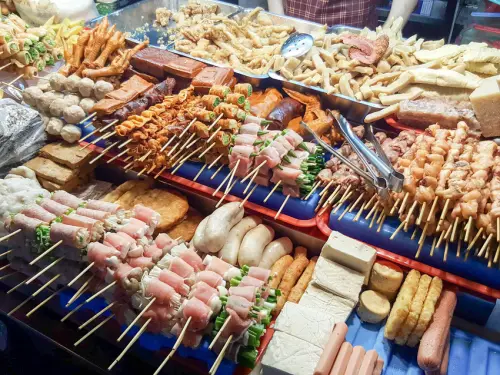蝦捲、鵝姆片、米腸、黑輪、貢丸、鱈魚丸、花枝丸