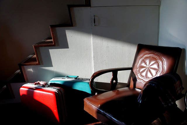 位置旁邊的老沙發與行李箱,似乎在訴說著旅人與時空的故事