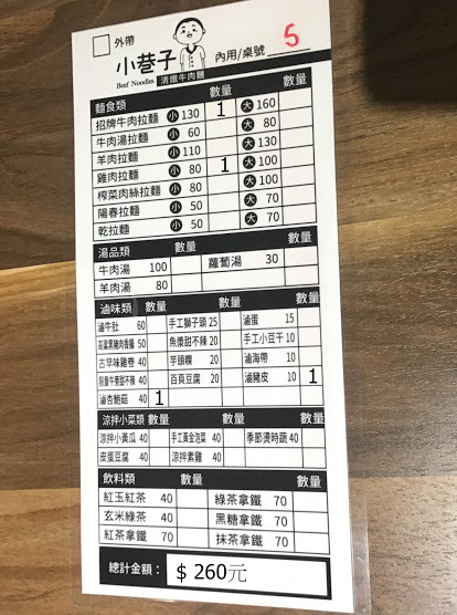 價目表有麵食類、滷味類、湯品類、涼拌小菜類、飲料類
