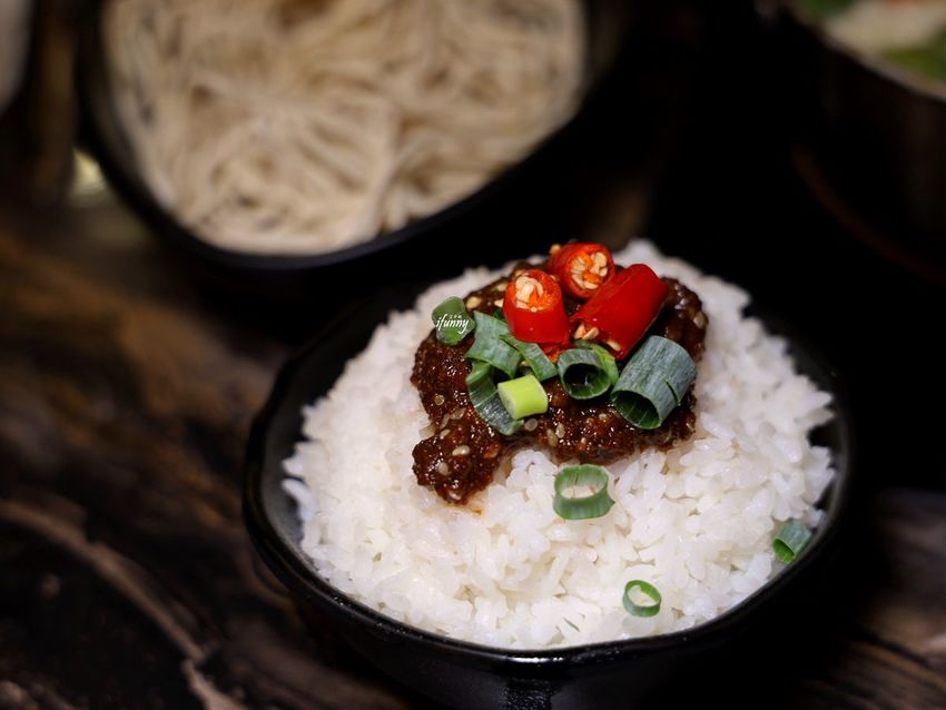 白飯米粒圓潤飽滿,加上了超拌醬後整個美味大升級!這個秘製沙茶醬香氣四溢,略帶甜味卻不膩口,這天的友人,光是拌飯就能吃掉一大碗飯,竟還意猶未盡呢!另外手工拉麵,淋上超拌醬後,那香Q帶勁的口感也是令人滿意,